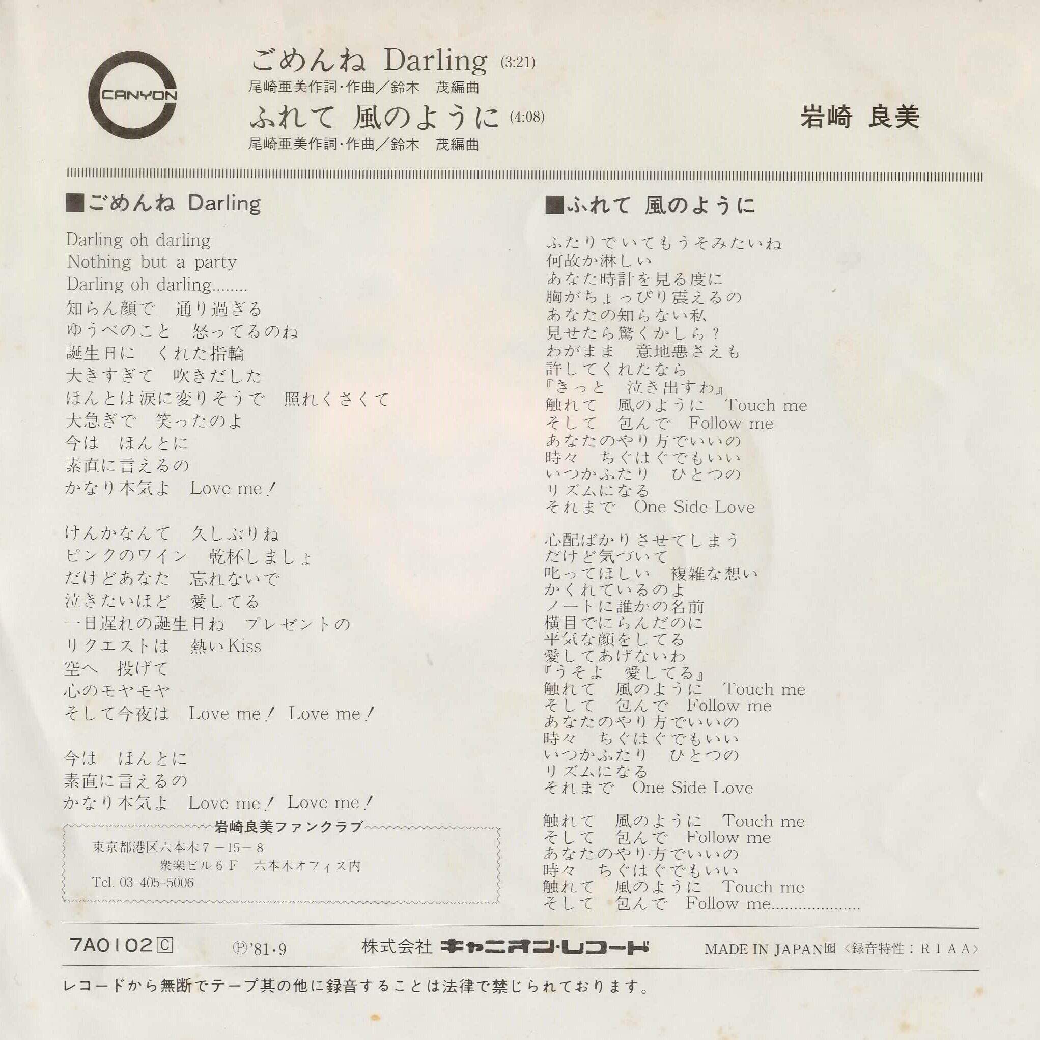 岩崎良美 / ごめんね Darling