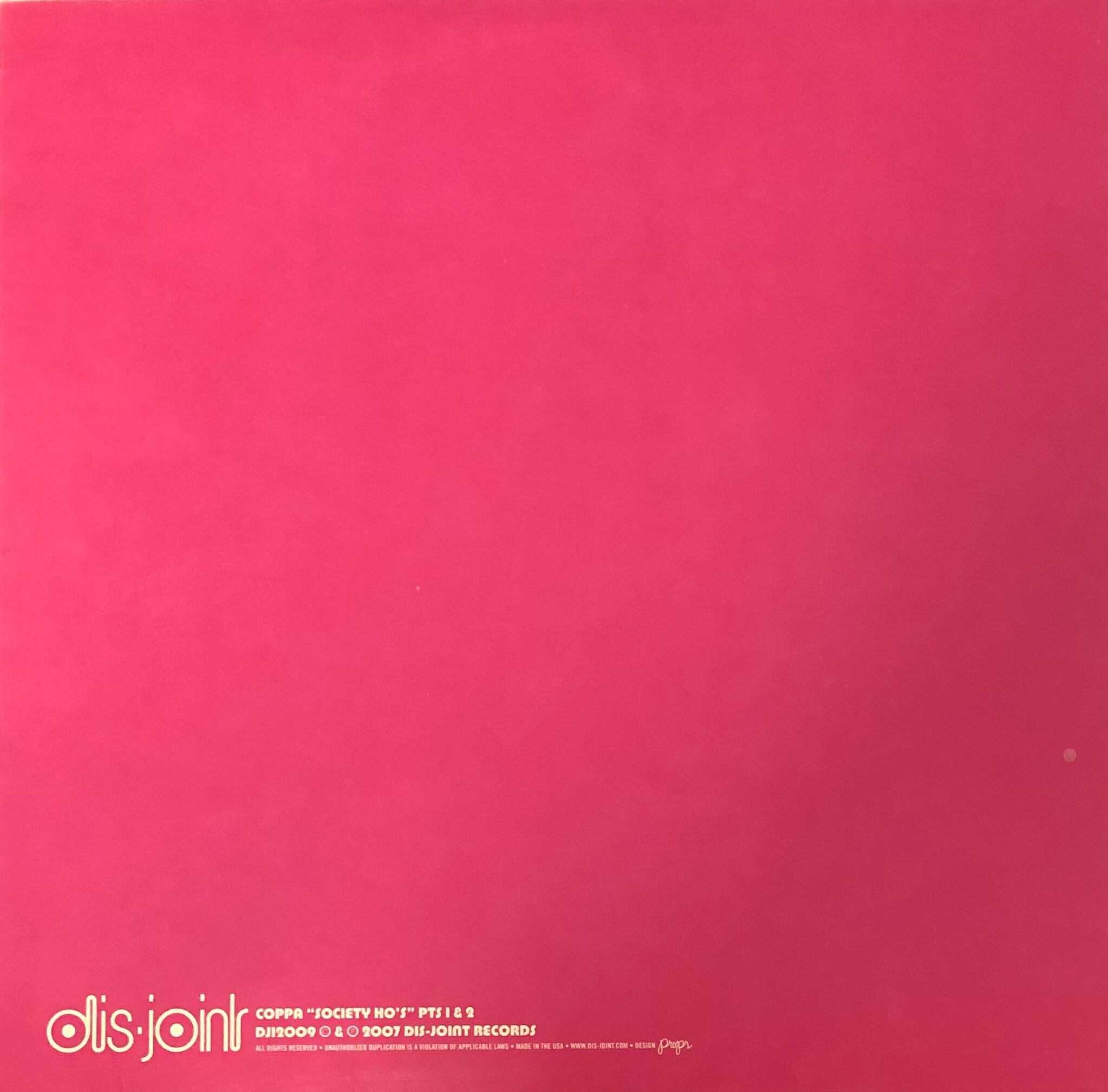 DIS-JOINT RECORDSから07年にリリースされた、QUINN LUKEのプロジェクトCOPPAによるシングル。