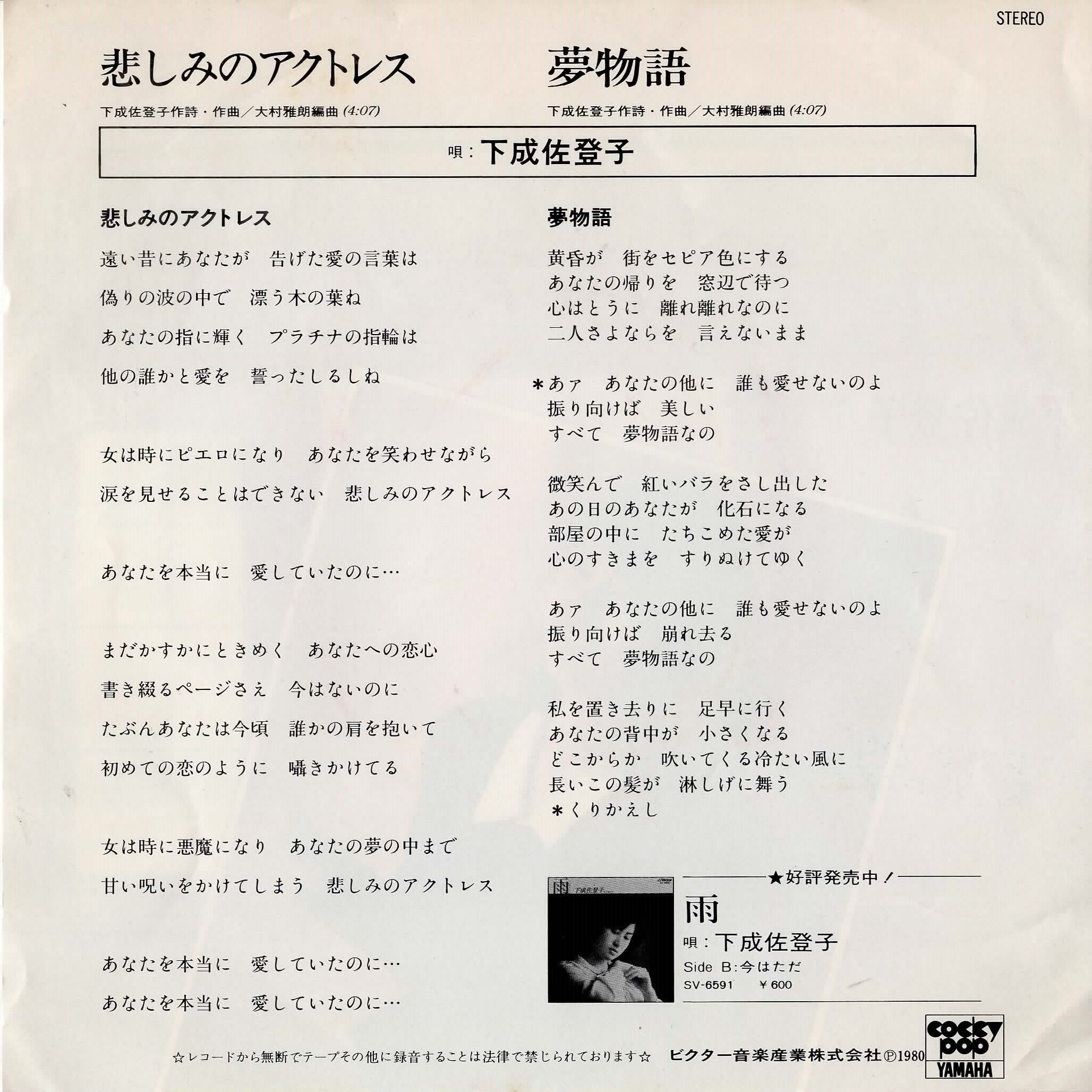下成佐登子 – 悲しみのアクトレス