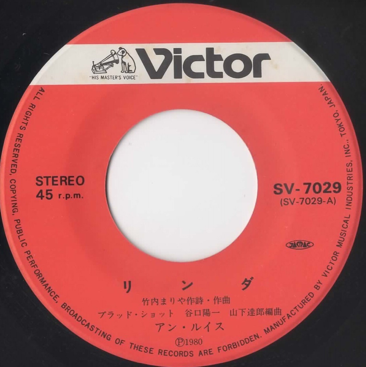 (Victor – SV-7029,Vinyl, 7", 45 RPM,Japan,1980,Pop)