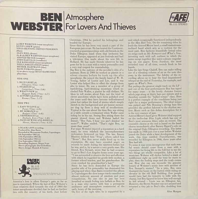 Ben Webster – Atmosphere For Lovers And Thieves