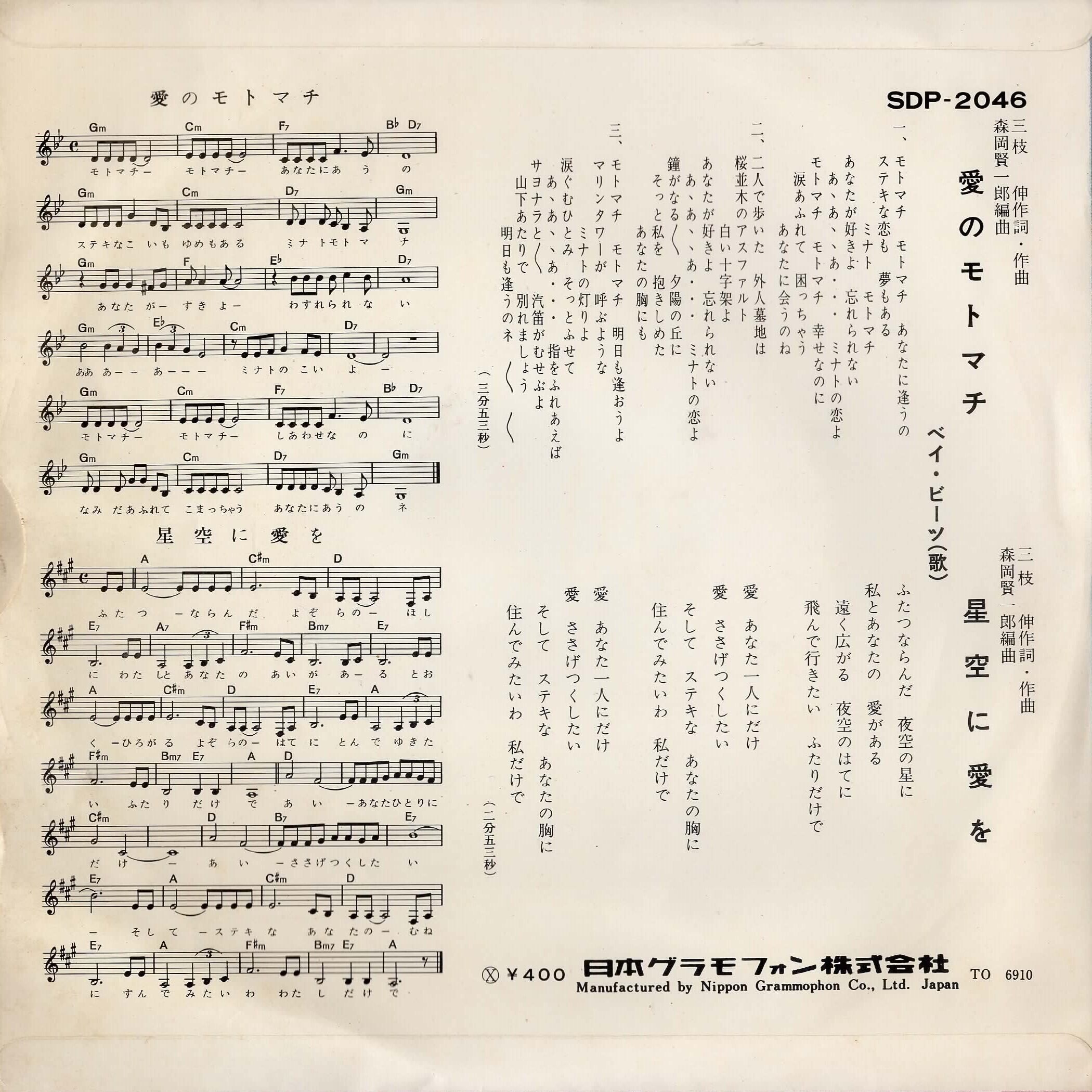 1969年作、イントロがハードなガレージ・サイケ歌謡「愛のモトマチ」収録。