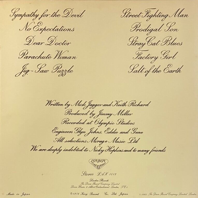 「レット・イット・ブリード」と並び、60年代後期ストーンズの傑作として名高いアルバム。ブライアン・ジョーンズ在籍最期の作品としても有名な作品。