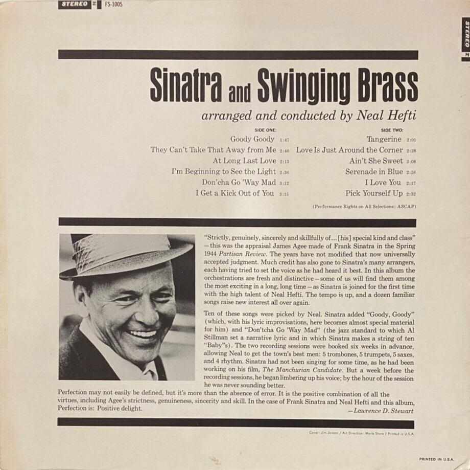 Frank Sinatra Arranged And Conducted By Neal Hefti – Sinatra And Swingin' Brass